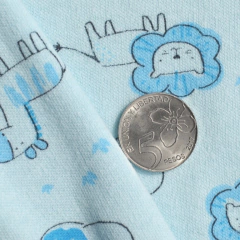 Tela estampada y suave al tacto, elástica, buen acabado, caída suave, sin brillo, semigruesa, cálida, cómoda, de fácil lavado y resistente al uso.